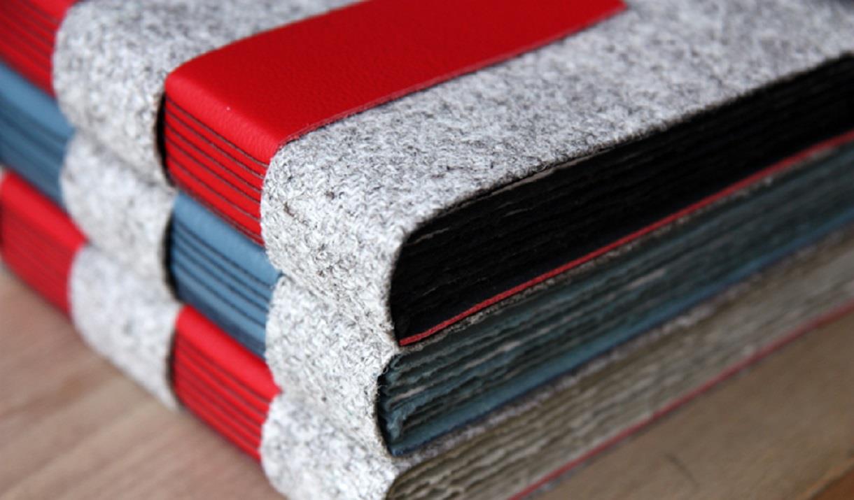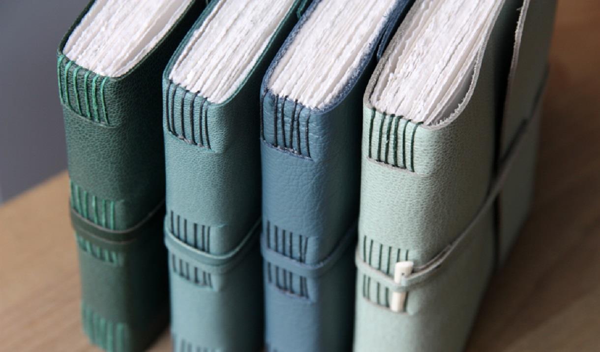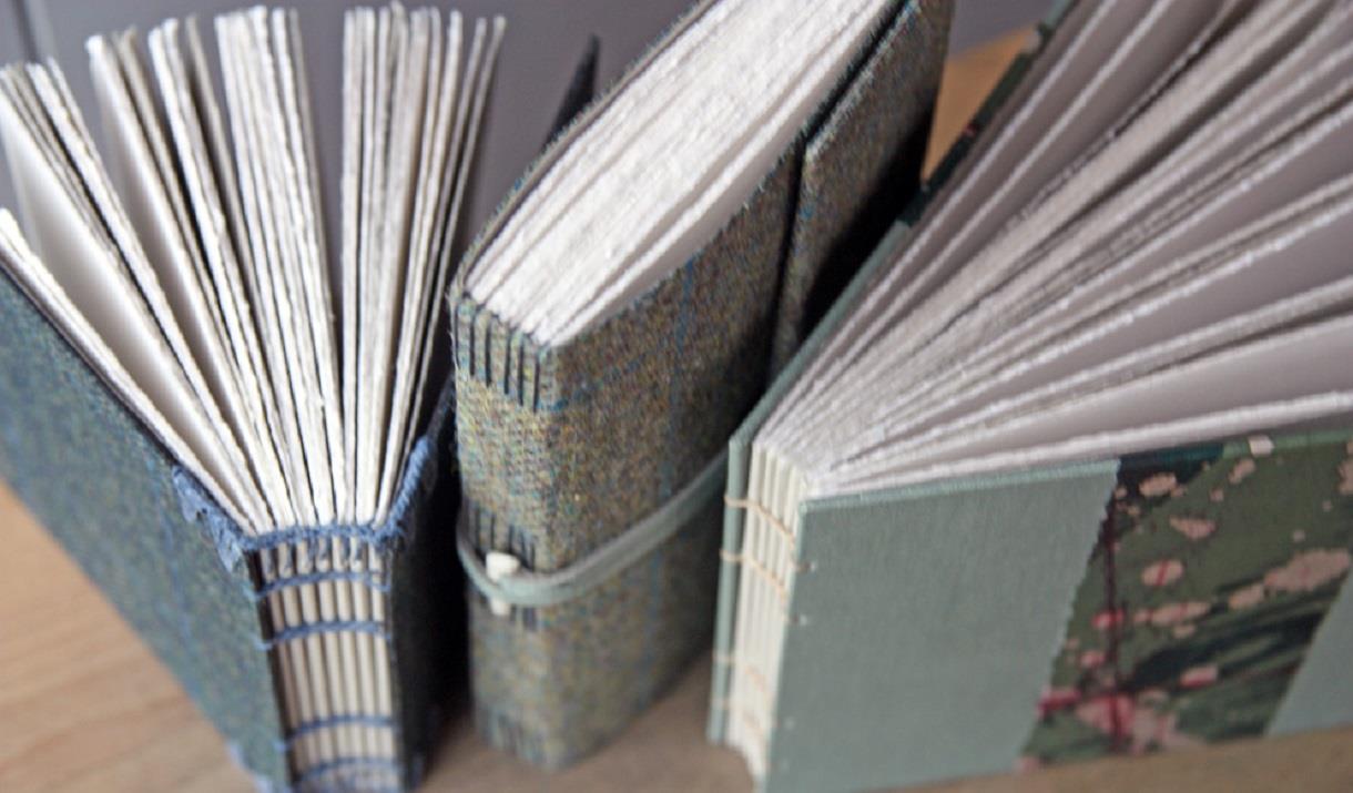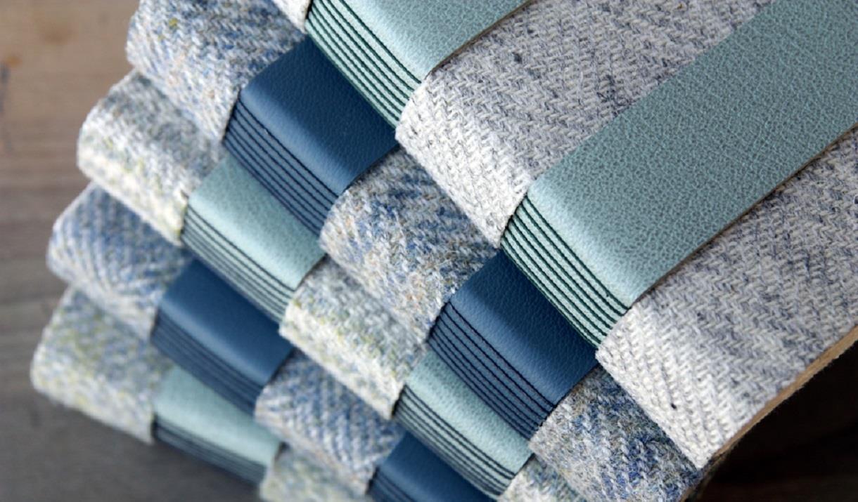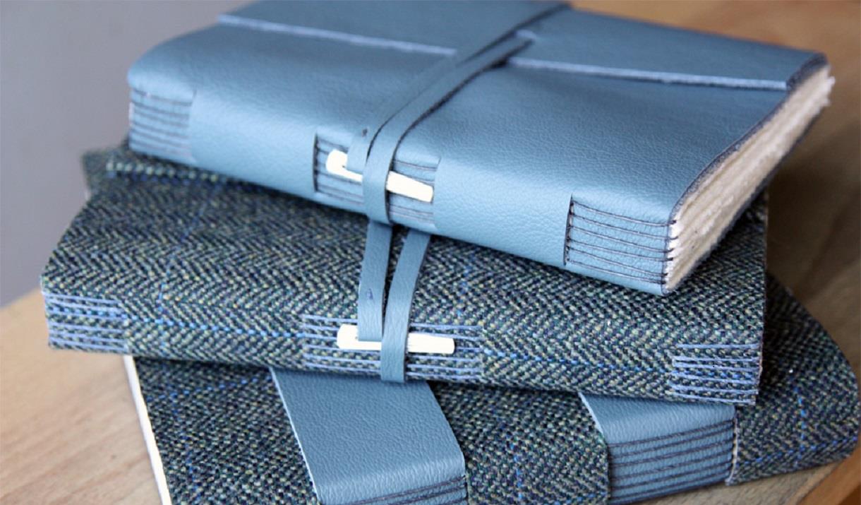I also love working with Harris tweed and leather. Here, I work with different book structures like long stitch journals, cross structures and coptic books with handsewn headbands.