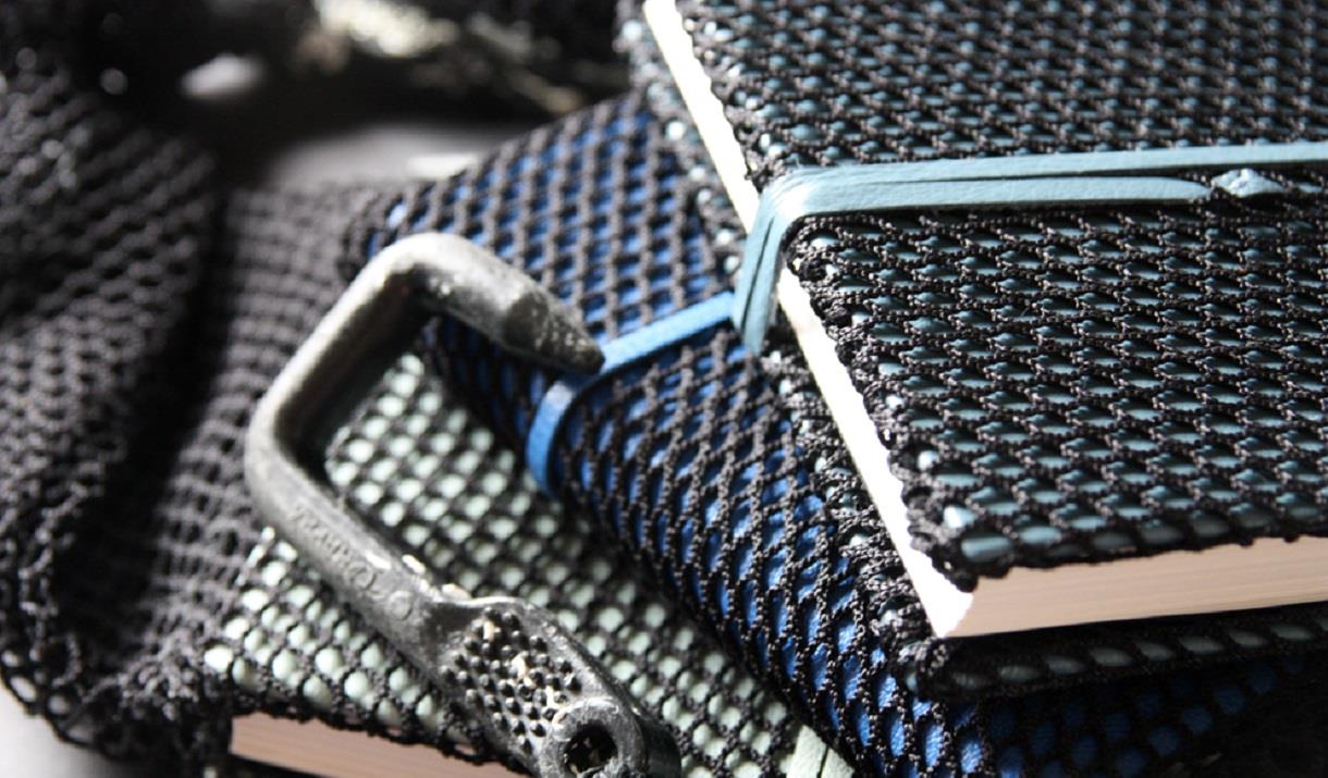 Over the years I have participated in a number of group exhibitions travelling to places such as Edinburgh, London and Germany. Playing with traditional book binding techniques and adapting them in response to the place I live in is a real joy. I incorporate new materials into traditional book structures such as sand, netting, fish farm overalls and creel hooks. In my decorative rock papers I play with rock patterns whilst the very process of making these papers with the melting of wax with ink and dyes echoes the melting of sediments in the formation of rocks defining the Uist shore line and visible in each tiny pebble on the beach – an unearthing of patterns and accidentals. In binding my books, I am able to understand my relationship with the spaces that surround me a little better and to communicate its nature with others through the medium of the book.