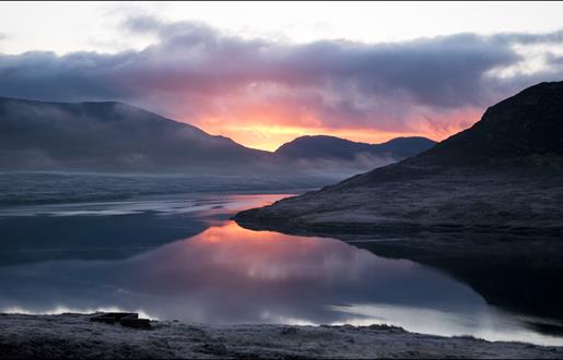 Situated at the foot of the southern slopes of the North Harris mountains, the remains of a 20th century industrial site nestle between the road and the shore of Loch Bun Abhainn Eadarra.