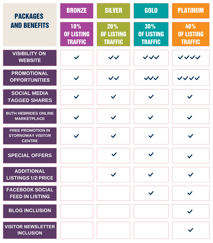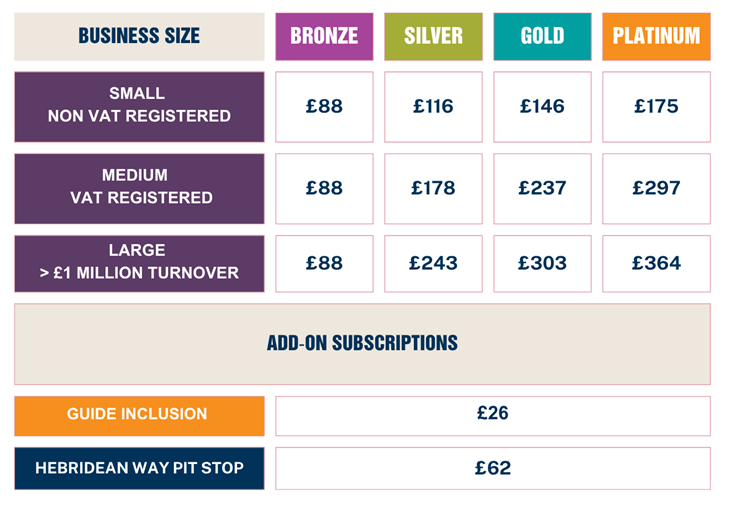 Pricing varies based on your business size and the level of exposure you’re looking for. Enhance your presence with optional extras such as Hebridean Way Pit Stop listings and Guide inclusion.