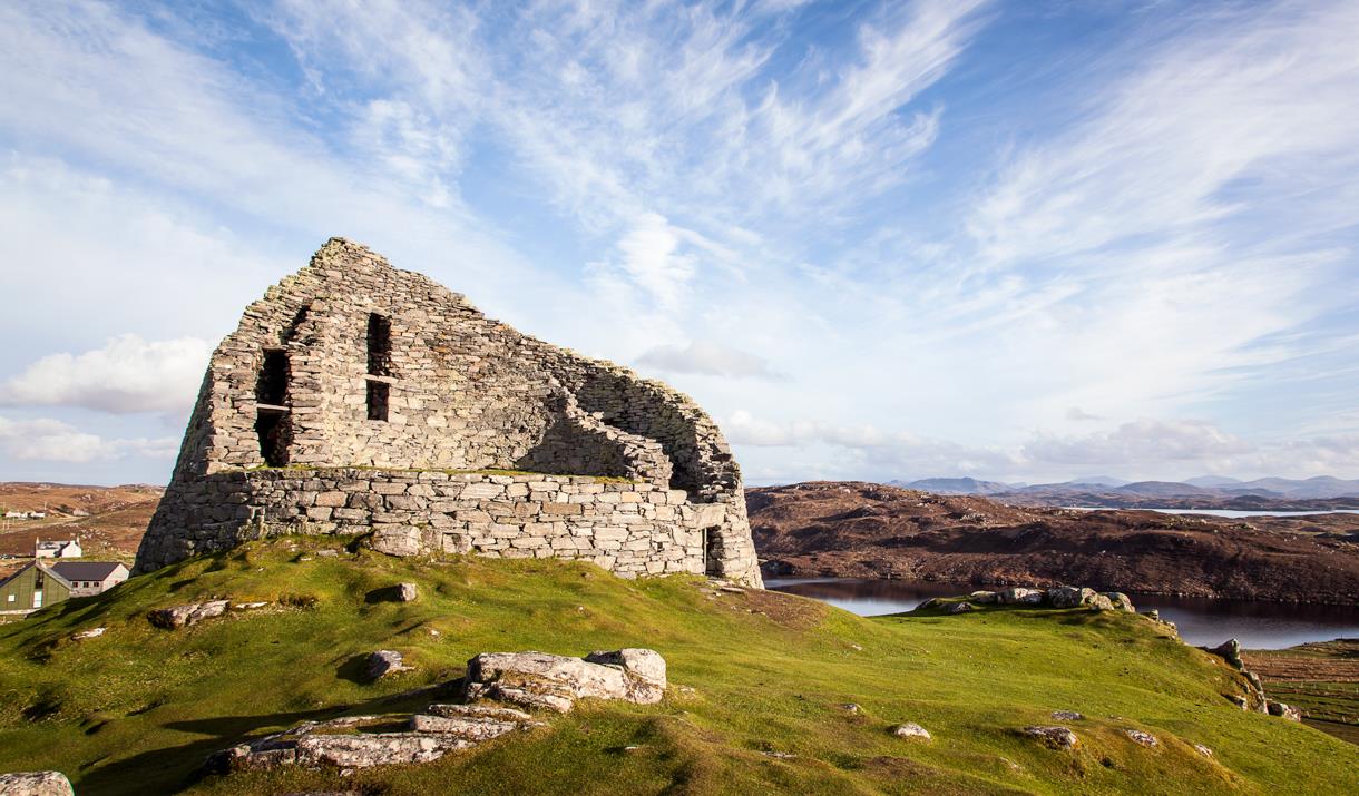 The route follows the west coast and further on from Callanish, you can take a break from the main road by riding through Tolsta Chaolais, a pretty village strung out around a loch. Then comes Dun Carloway; a broch which is thought to date from the last century BC and then the Gearrannan Blackhouse Village, where you can experience what life was like here a century ago.