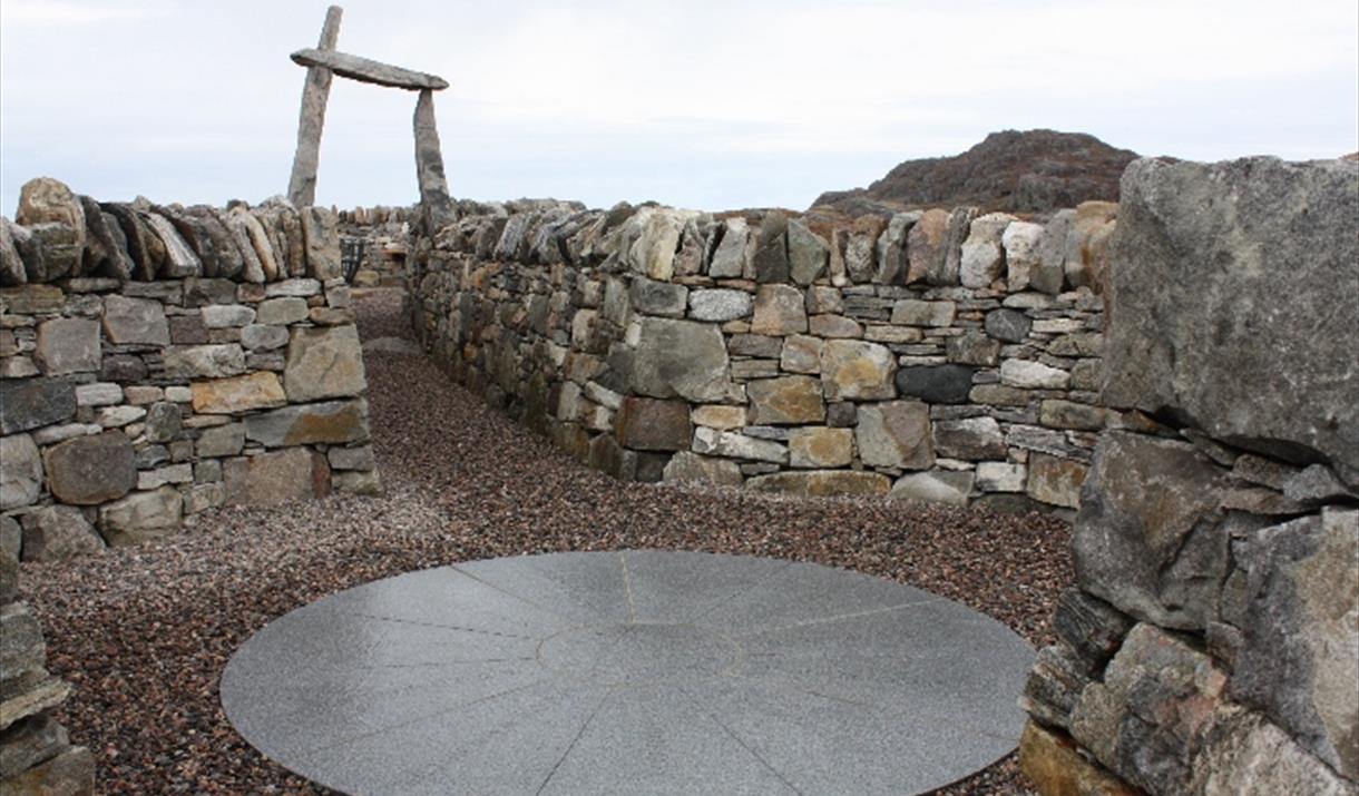 In this centenary year of the land raids by the Reef Raiders, An Sùileachan has been completed with a structure of stone walls, which follow the contours of the land and define two circles connected by a walled walkway or passage. The east circle has as its centre, a circle of grey granite with the names of the land raiders inscribed on it. The walkway leading to the west circle passes through a stone arch creating a link from the past to the future. The larger western circle has at its centre a millstone with an iron fire basket mounted on it, which will be lit at times of celebration and commemoration. The stone walls in this circle have integrated seating inside and outside, allowing for shelter and appreciation of the surrounding environment. Two openings in the walls are symbolic of the gaps made in the walls by the land raiders and allow access to the view and the outside world. This work of public art has been named in Gaelic, ‘An Sùileachan’, which orbits around the word ‘sùil’ – the Gaelic word for ‘eye’ - but which extrapolates out to ‘eye-opener’ and ‘noteworthy’ and even ‘prescient’ and ‘far-seeing’ and looks as much to the future as to the past. An Sùileachan melds intimately with our landscape, stitting on a panoramic area overlooking ancient archaeological sites giving us glimpses of our past, sweeping over a crofting landscape with lazy beds and ruined blackhouses and over to West Loch Roag with modern sea harvesting, as well as prawn boats, cruises to remote St Kilda and sea safaris.
