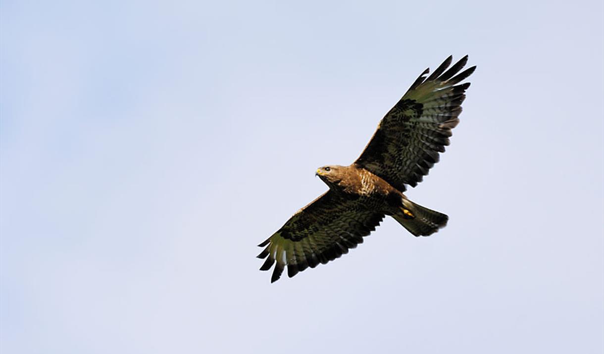 Listen out for the croaking calls of ravens. Their agitated calls are often the first sign that eagles are about.