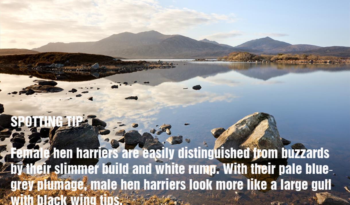 Female hen harriers are easily distinguished from buzzards by their slimmer build and white rump. With their pale blue-grey plumage, male hen harriers look more like a large gull with black wing tips.