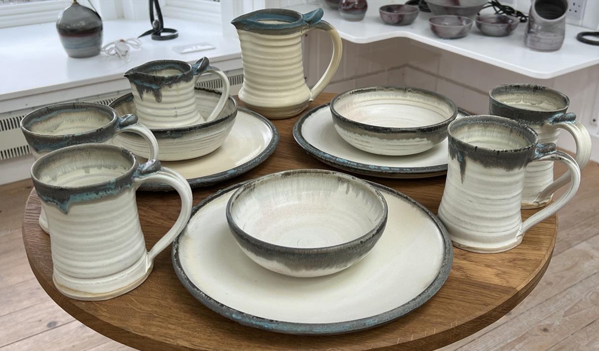 Handthrown and glazed using traditional techniques, each Borgh Pottery piece is unique, and takes approximately three weeks to complete from start to finish.