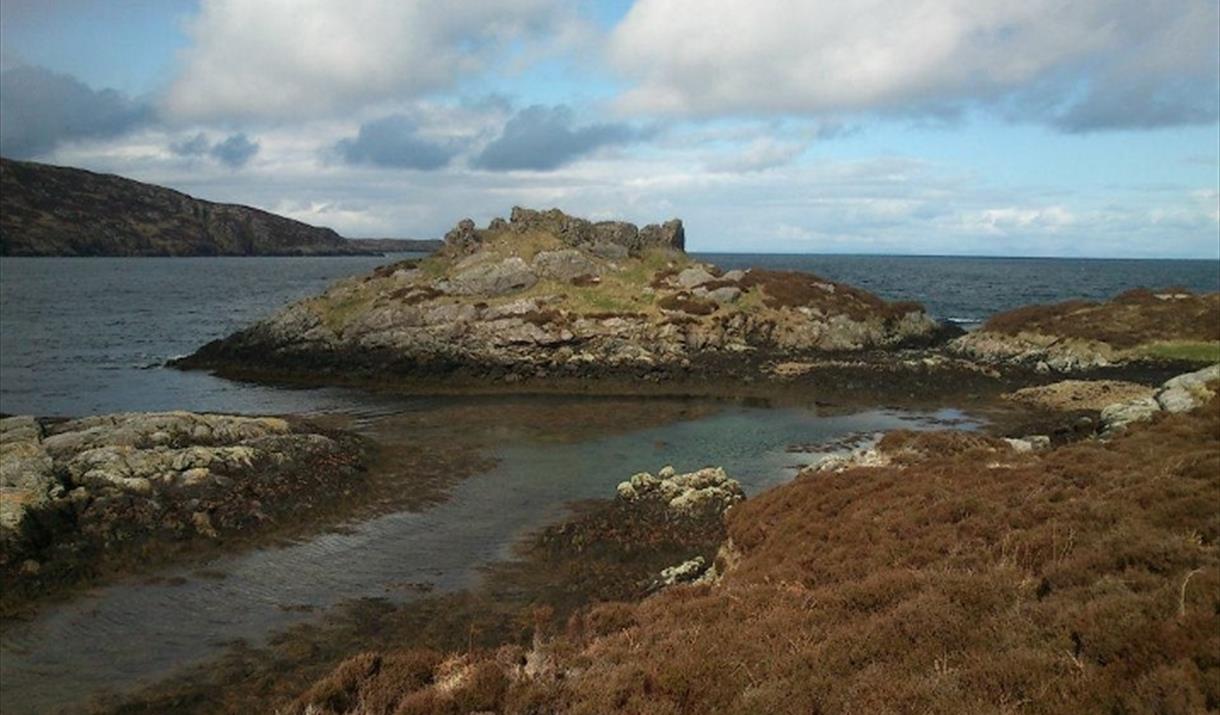 Calvay Island sits to the south of the mouth of Loch Boisdale. On a very small tidal islet beside it lie the ruins of Calvay Castle which is said to date back to the 13th Century AD. It’s from hiding in these ruins Bonnie Prince Charlie headed across the Loch to Ben Kenneth and Triuirebheinn for further shelter and a vantage point of the Minch.