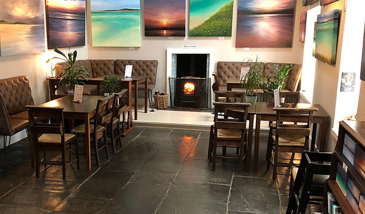 Skoon Gallery exclusively exhibits and sells original oil paintings by resident artist Andrew John Craig. The gallery was opened in Geocrab (in the Bays of Harris) in 2005 and is open all year round. From April to September visitors can sit outside and enjoy the views across the Minch to Skye, or sit inside and enjoy browsing the original oil paintings on display. From October through to March, bookable afternoon tea events are advertised on www.skoon.com and gallery viewings can be made by appointment.