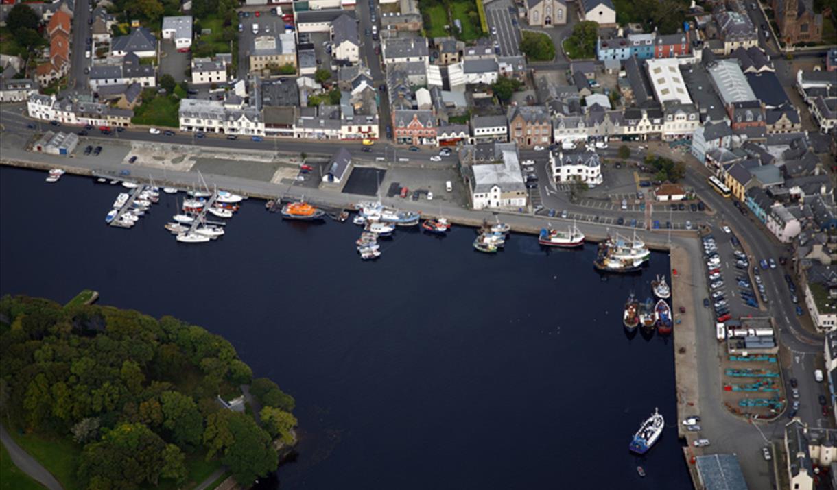 This lively bustling town has everything you would expect of a modern Commercial Port as well as including one of the leading slipway facilities on the West Coast and islands. A pontoon facility with a total of 80 berths for vessels up to a maximum length of 24 metres, is situated at the north end of the Inner Harbour beyond the Lifeboat pontoon berth. The 80 berths are available 12 months of the year. Berths can be allocated to visiting vessels although there is a great demand for these berths during the summer months. In order to ascertain berth availability prior to arrival you should contact the Harbour Office during working hours, or the Duty Watchkeeper after hours and at weekends. In any event, visiting boats should give one hour’s notice to the Harbour Watchroom on Channel 12 VHF.