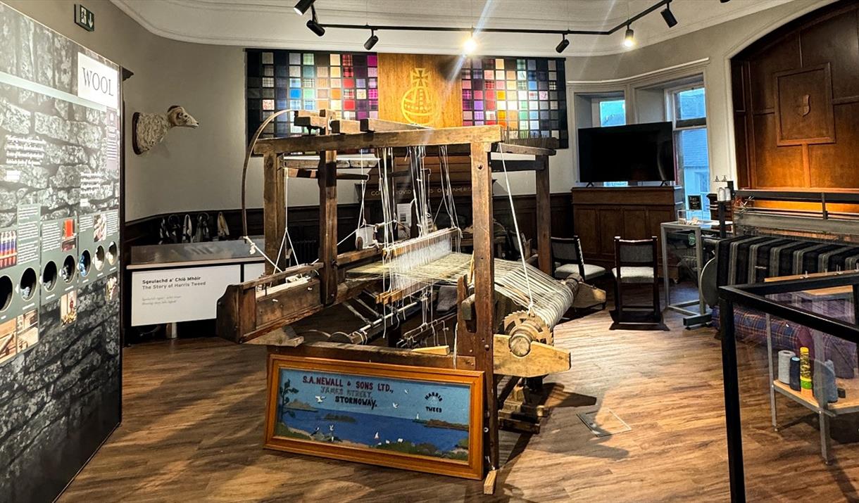 Discover how the Harris Tweed Story Room offers an immersive journey into the world of Harris Tweed, beginning with a captivating short film that introduces the fabric's stories past and present. Be guided through the industrial history and development of Harris Tweed, gaining insights into the intricate processes within the mills. Watch a live demonstration by a weaver on a loom, gaining firsthand insight into the intricate craftsmanship. Visitors will also have the chance to jump on the loom and make some tweed themselves. The tour also explains the meticulous processes within the mills and the regulations binding weavers, mills, and the authority that make the industry unique. Learn how The Story Room also highlights the vital role of the Harris Tweed Authority in protecting and preserving this cherished piece of tangible heritage. Tours are available on the hour, every hour, from Monday to Friday, starting at 10:00 AM, with the last session beginning at 2:00 PM